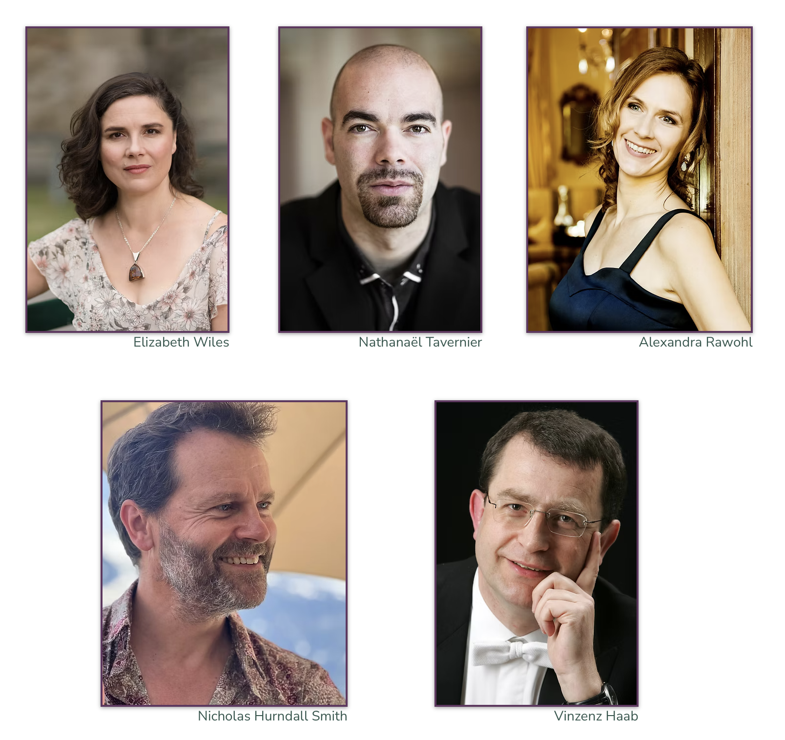 Nicholas Hurndall Smith - Evangelist und Tenorarien, Vinzenz Haab - Christus, Elizabeth Wiles - Sopran, Alexandra Rawohl - Alt, Nathanael Tavernier - Bass